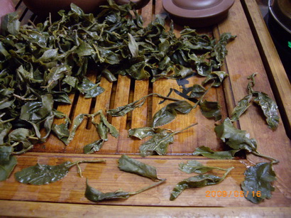 茶葉泡開後還滿脆的,葉很容易從梗脆落,但可看出製茶上還是手工茶,