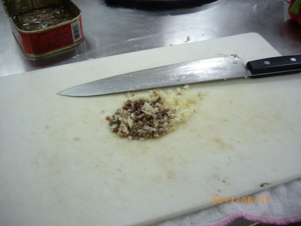 作法: 蒜碎與提魚切成細碎茉,與其它材料拌勻.