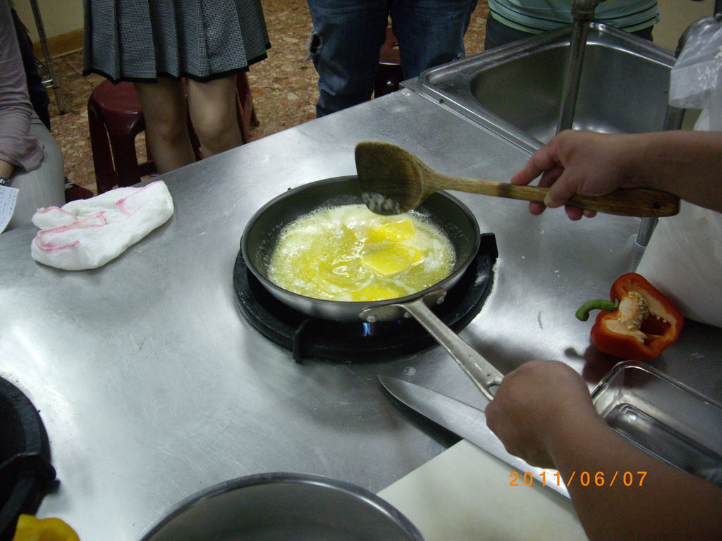 作法: 1.奶油加熱化開後,加入麵粉拌勻.(邊拌邊加麵粉,可加至調成奶酥狀(乾乾的有粉的感覺),