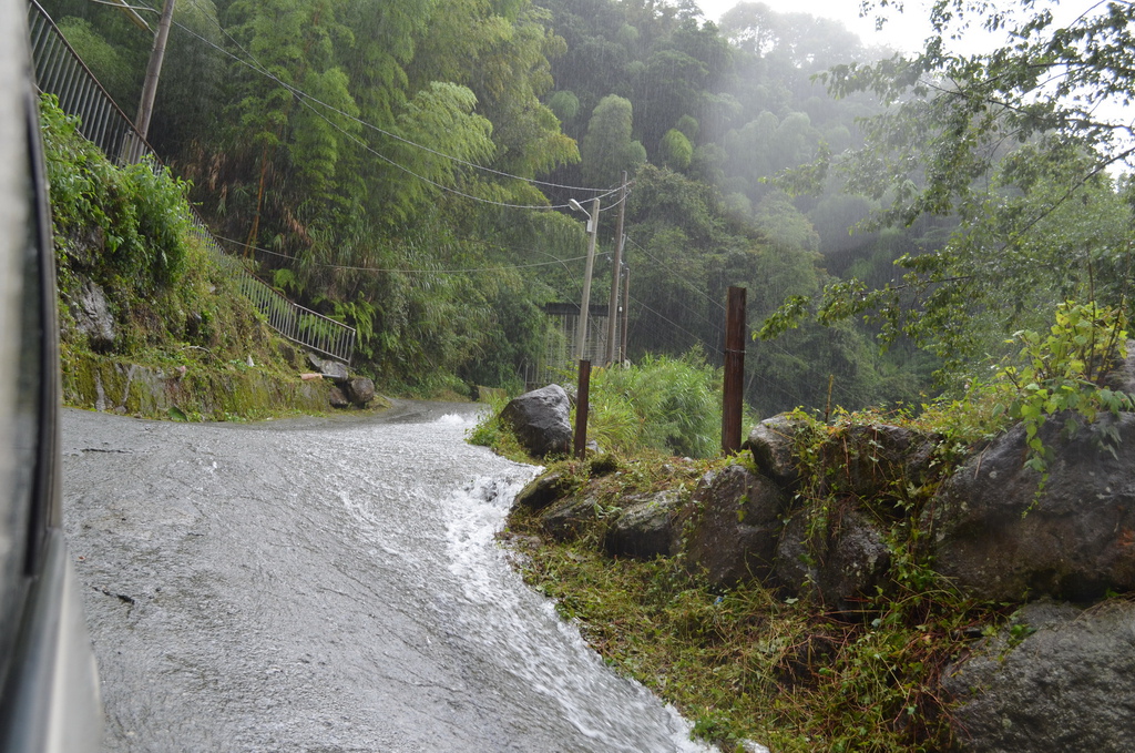 當到受天宮外牌坊時還好,一到受天宮後巨雨一陣,到我停好車,