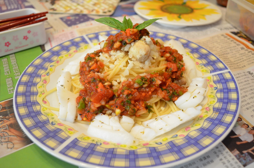 作成義大利海鮮涼麵,