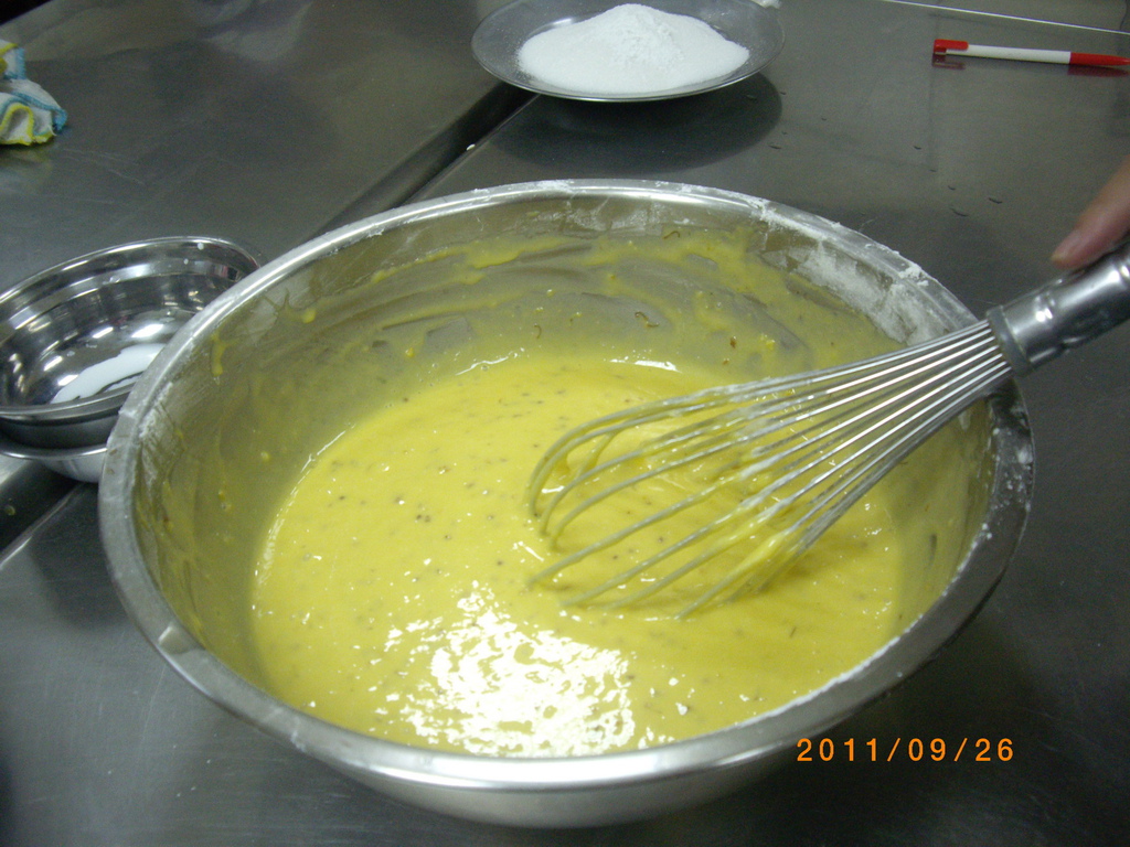 材料 : 1. 蛋黃240g. 沙拉油100g,鮮奶120g,蜂蜜100g,