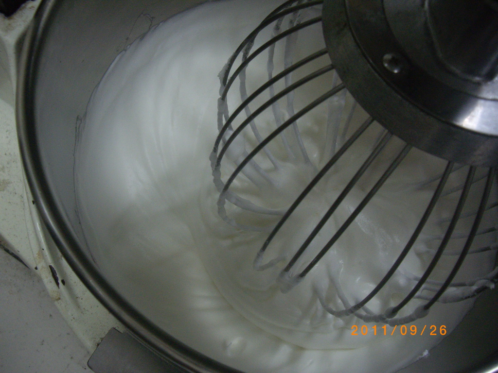 4. 植物性鮮奶油打發,再與上述材料混合.