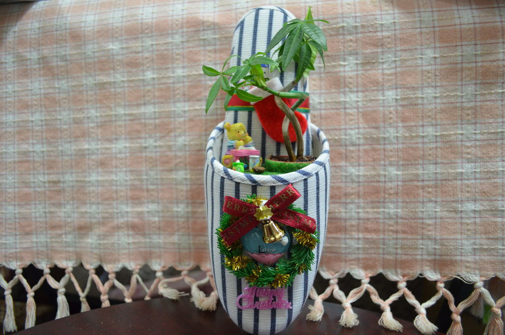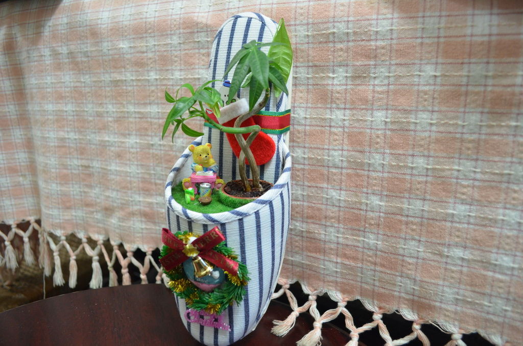 這麼可愛又有聖誕氣息的拖鞋盆栽~